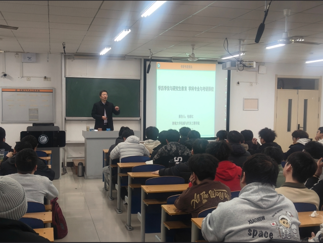 于5号教学楼C303举办考研专题报告会。学院党委书记包春江担任主讲。